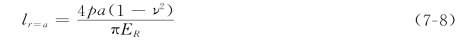 在柔性压板边缘处r=a,其挠度可以按式(7-8)计算: