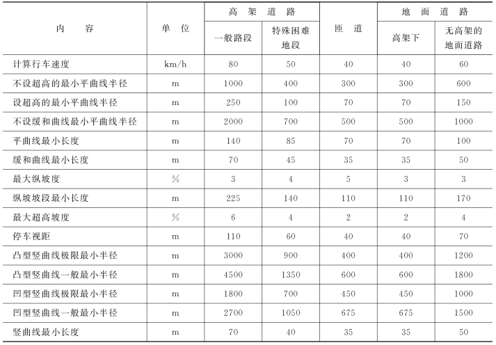 表11-2 线形技术标准