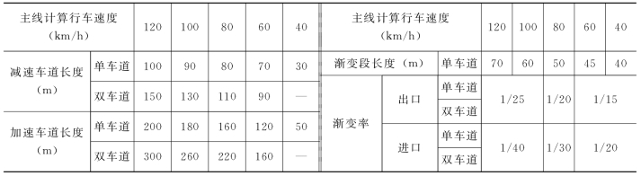 变速车道的宽度通常为3.5m。变速车道的最小长度可参考表12-7所列数值。
