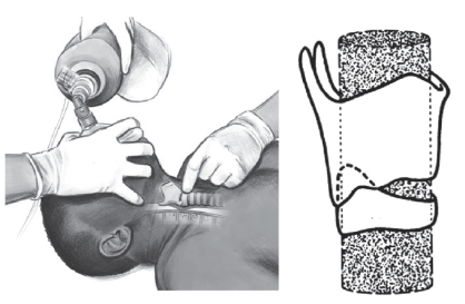 图2-67 曾经推荐的气囊面罩通气时的环状软骨加压法