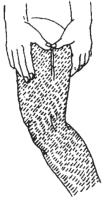 (4)胫腓骨骨折固定:用木制夹板或负压骨折固定仪。木制夹板最好用2 块夹板,内侧一块,外侧一块(图2-106)。