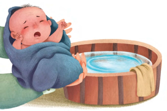 我一惊,手不禁一抖,差点让她掉下去。我越发恐惧起来,手上不敢使劲,觉得稍稍一用力就会把她给弄碎,不用点力又怕她掉下去——那个木盆像是一个深潭,掉下去就会把她淹死。不一会儿,我就被她折腾出了一身汗。