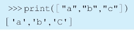 如上例所示,当print()输出字符串表示时,字符串统一采用单引号形式表达。该例中,列表中的元素“a” “b”和“c”等以字符串形式被print()函数打印输出,输出结果采用单引号形式:‘a’‘b’和‘c’。