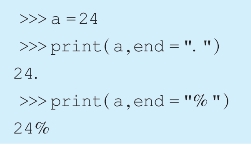 print()函数输出文本时,默认会在最后增加一个换行,如果不希望在最后增加这个换行,或者希望输出文本后增加其他内容,可以对print()函数的end参数进行赋值,使用方式如下: