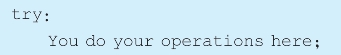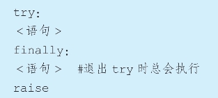 注意:可以使用except语句或者finally语句,但是两者不能同时使用。else语句也不能与finally语句同时使用。