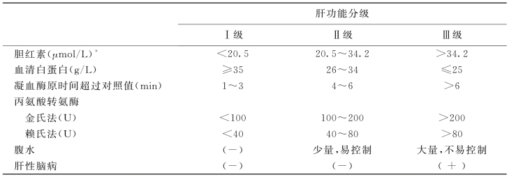 磺溴酞钠(BSP)潴留试验>15%;吲哚氰绿(ICG)消失率<0.08。为探讨肝细胞功能的储备能力,糖耐量曲线试验有一定价值。90~120min值如高于60min值者,提示肝细胞储备力明显低下,麻醉手术死亡率极高。