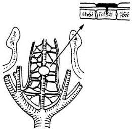 可见到出血点的小静脉损伤,可用手指压迫,吸尽血液后,用针缝合其周围的各个静脉支。也可以在其周围静脉注入止血生物凝胶(ZT胶或TH胶),但不能从骨孔向内快速注入止血胶,以防发生异位栓塞。见到骨孔的涌血,可向骨孔内压塞骨蜡。用特制的止血图钉加骨蜡按捺在出血处往往止血有效(图8-29)。