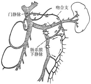图8-27 阻断肠系膜下静脉后的侧支循环