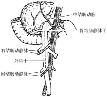 (2)处理:中结肠静脉损伤可以结扎止血,不必修复,因为有来自左、右侧静脉的代偿,可以保证横结肠静脉血回流。
