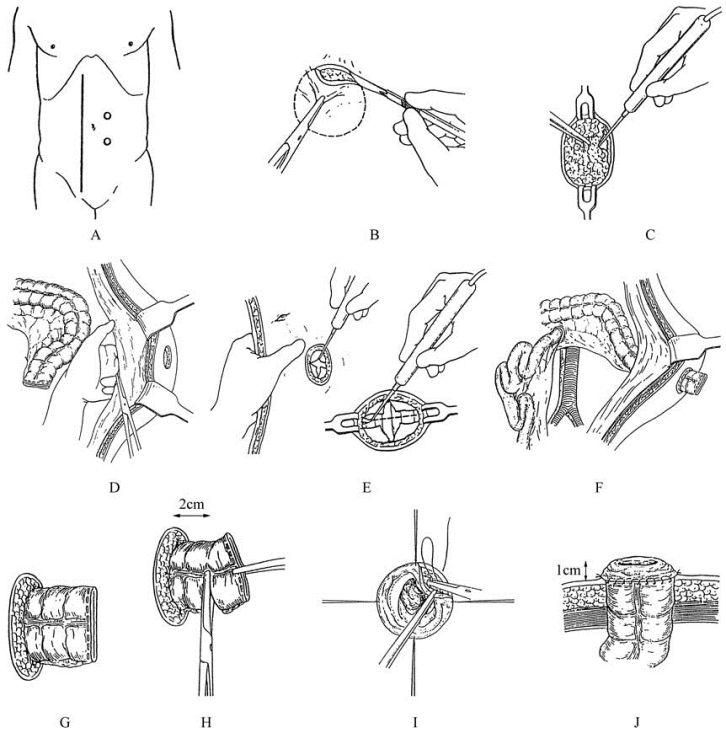 这种特殊的造口方法,既有储液袋,也有人工套叠瓣。除了做回肠单管造口之外,还可以在回肠代膀胱手术时应用。