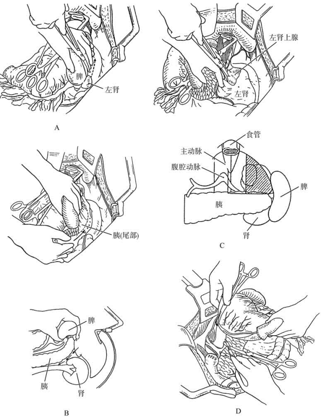A.切开脾后方腹膜;B.翻转脾和胰尾;C.游离左肾和肾上腺前的腹膜;D.切断胰尾后即可整块取除标本