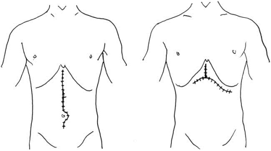 1.体位和切口:仰卧位背部垫高。上腹部正中切口向下绕脐,或是上腹部人字切口进腹。安放拉钩显露手术野。脾外侧用纱布垫托起(图30-29)。