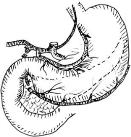 图32-25 切除胃十二指肠动脉及胃网膜右动脉