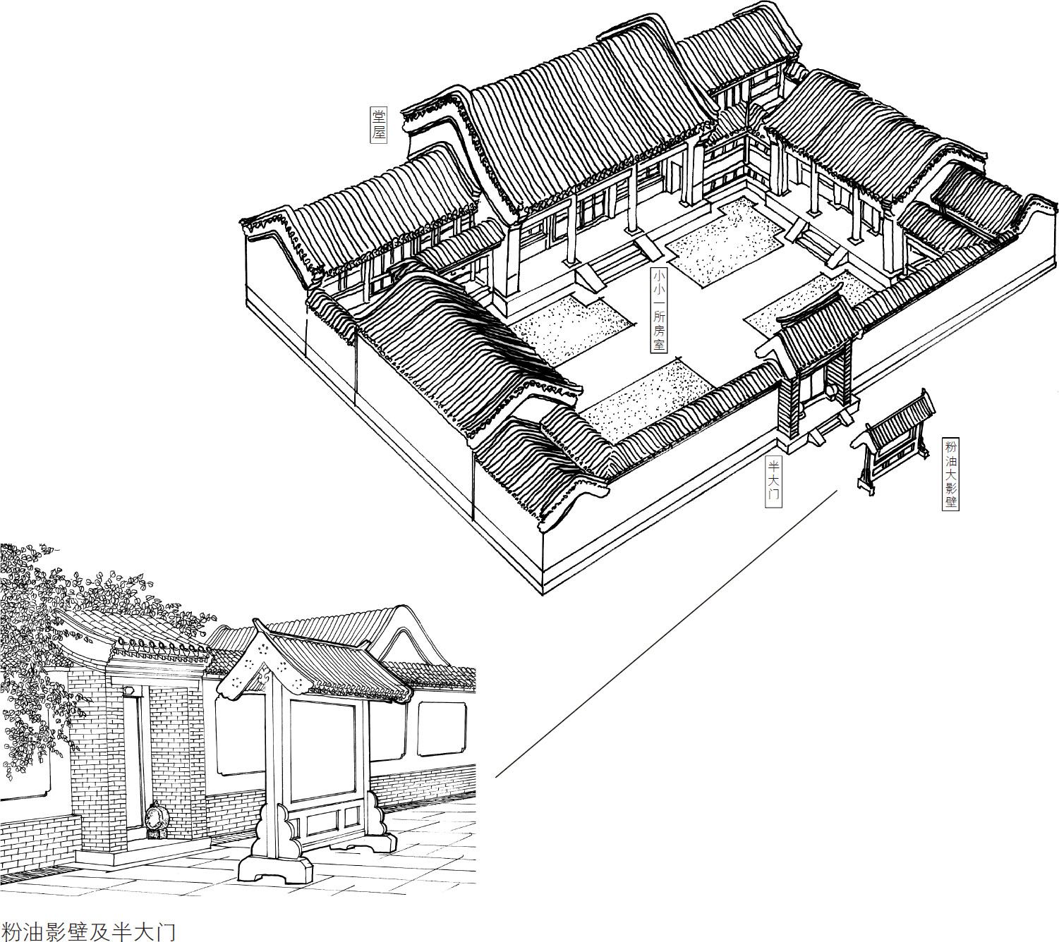 王夫人携着黛玉沿着南北宽夹道往贾母院去,夹道北边立着一个粉油大影壁,后有一半大门,小小一所房室,便是凤姐儿院了。所谓“小小一所房室”,是相对贾母院、王夫人院而言,何尝真是小呢!一正两厢抄手游廊的小院,三间正房是贾琏和凤姐的会客室,西耳房是二人的卧室,东耳房是巧姐儿的卧房,西厢房是秋桐的住所,东厢房曾是尤二姐的住所。此外,还有二门、外书房、下房、账房、屋后空房、后楼等多处建筑,一应俱全。
