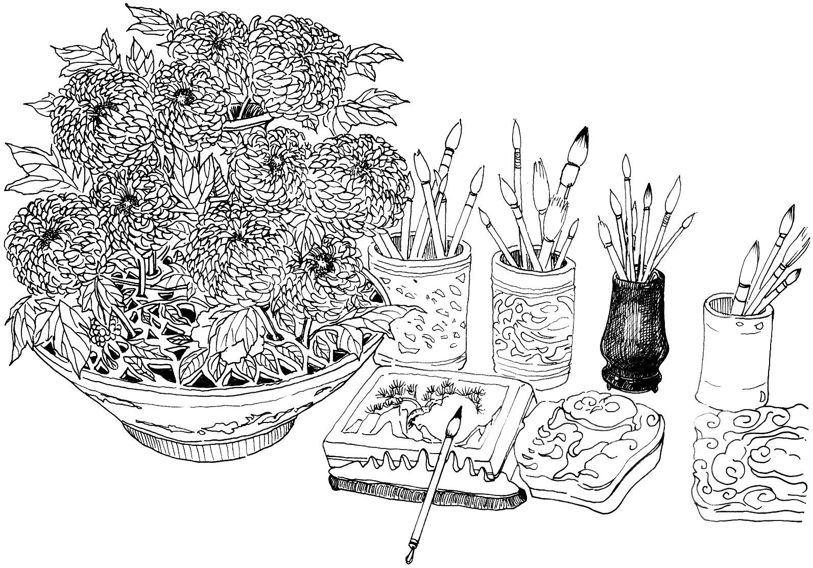 据《宋史·文苑·米芾传》载:“芾为文奇险,不蹈袭前人轨辙……画山水人物,自名一家。”他画山水用水墨点染山形树影,烟云雨雾,蒙蒙一片,自创出一种独特风格。其子米友仁继承家法,世称“米氏云山”。但米芾并没有可信的画迹传世,《烟雨图》当是曹雪芹依据米芾最擅长的画技而设计出的小说道具,却是十分熨帖。探春素喜阔朗而细于洁净,那案上摆放的晶莹一瓶的白菊,正是她的人格象征——这与宋史上记载的“好洁成癖”的米芾倒有相通之处,足见作者的匠心深切。