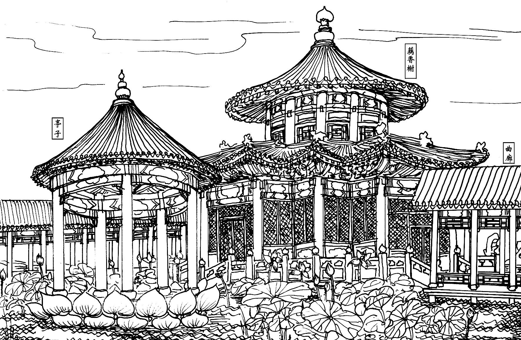 藕香榭是为了观赏水容水态而建造的,作为一处景区,除了水榭外,还有水亭、曲廊和竹桥,错落宛转,趣味和意境都往十分里做去。“盖在池中,四面有窗,左右有曲廊可通,亦是跨水接岸,后面又有曲折竹桥暗接”,开窗则四下里风生水起,入榭则有飘举若仙之想。水榭柱子上挂着黑漆嵌蚌的对联,写着:“芙蓉影破归兰桨,菱藕香深写竹桥”,可见水景最美是夏天——莲花如玉菱花香,水面上一派天真,香气溶入水里,散入风中,稀释了,也更清远绵长;更有兰桨击破水流声,竹桥载动脚步声,声声入耳,显得夏日永昼格外悠长寂静。贾母二宴大观园时,在缀锦阁里吃酒,女戏子们在藕香榭的水亭子上演习乐曲——借着水音欣赏,箫管悠扬笙婉转,乐声穿林渡水而来,格外好听。不远处的河岸上,有两棵桂花树,到了秋天,桂花香芬渺杳,像是女儿茫茫的心事,并作藕榭一味凉。