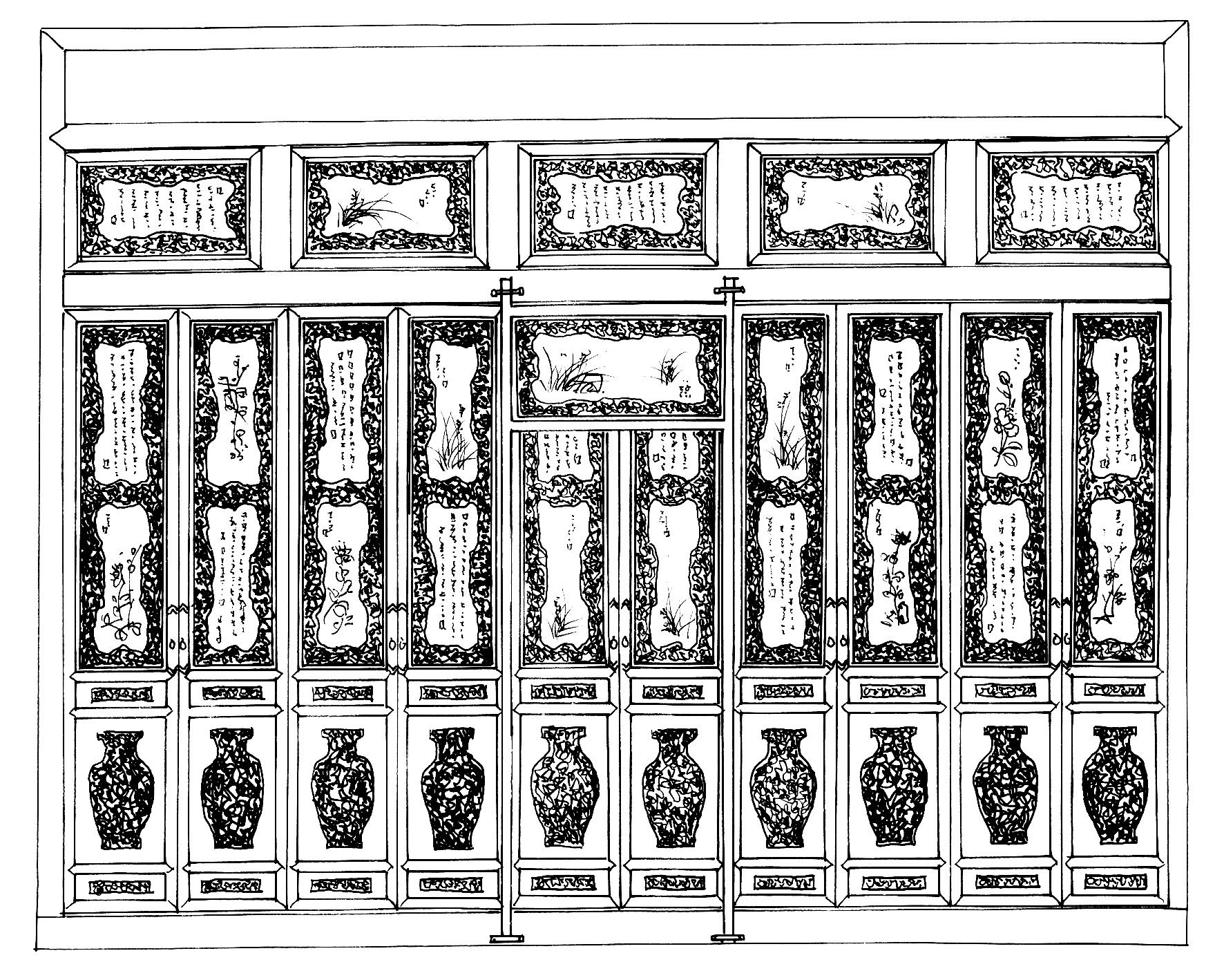 室内不见死板呆滞的墙体,只有灵活机警的槅扇,将空间依据功能一一划分得很清楚,或有贮书处,或有设鼎处,或安置笔砚处,或供花设瓶,安放盆景处,归属都很明了。而细观这些槅扇,则各式各样,或天圆地方,或葵花蕉叶,或连环半璧。真是花团锦簇,剔透玲珑,让人百看不足,却又要怀疑这里竟是个槅扇展览馆。