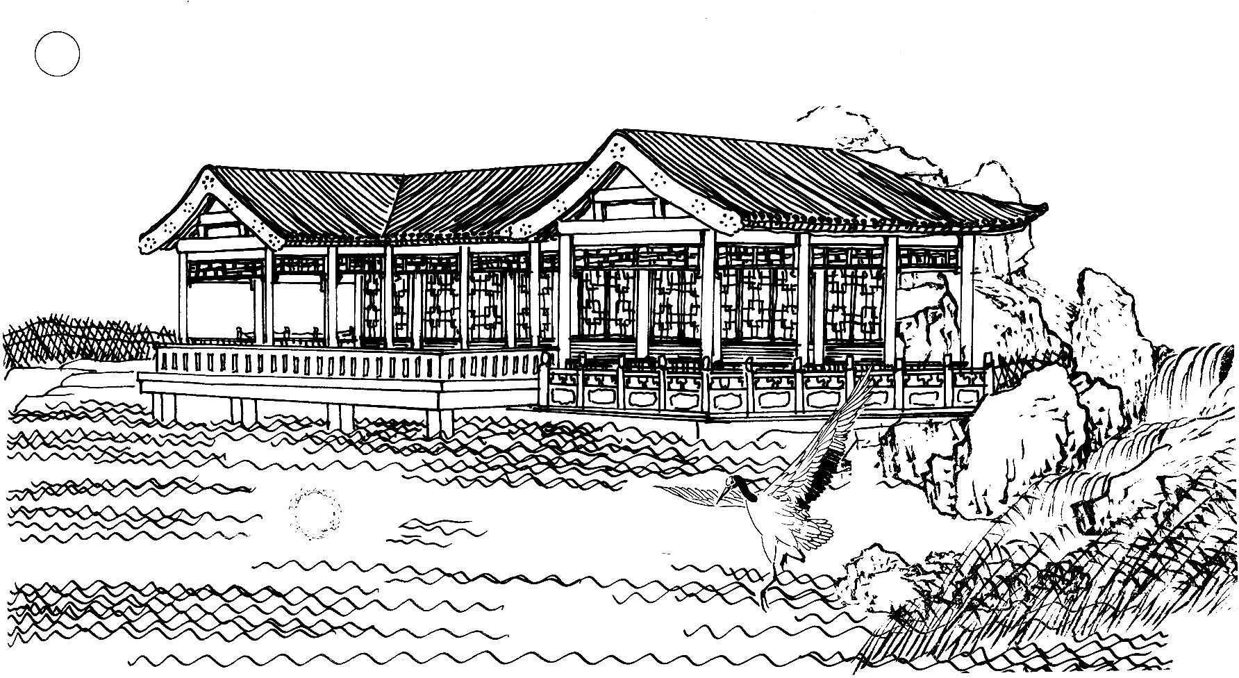 大观园山之高处取名“凸碧”,山之低洼近水处叫作“凹晶”,这是黛玉的妙想。历来少有人用“凸”“凹”二字命名或作诗,园中直用作轩馆之名,新鲜天真,不落窠臼。凸碧山庄位于嘉荫堂后面的大主山上,是大观园中轴线的终点处,凹晶溪馆几间房就在此山环抱之中,乃凸碧山庄的退居,位于沁芳闸桥下面的水池上,与藕香榭相接。凸碧山庄与凹晶溪馆一上一下,一明一暗,一高一矮,一山一水,仿佛特特为了玩月而设的。若想观山高月小的景致,凸碧山庄最妙,若爱皓月清波,便往凹晶馆。