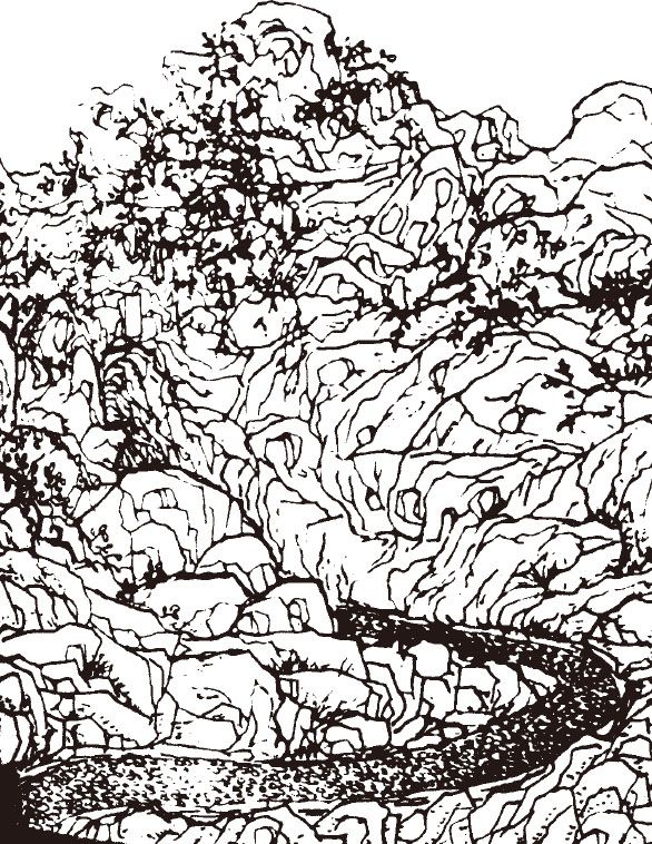 假山泉池虽多非自然山水,系人力穿凿而成,但全在匠心把握,造成“虽由人作,宛自天开”的效果。从纯形式看,假山本身就是一种石头雕塑艺术,具有线条飞舞跌宕,块面虚实凹凸的美,是用纯美的文学与书画的意念浇筑出来的。宋人杜季阳在《云林石谱》序言里说:“天地至精之气,结而为石,负土而出,状为奇怪……虽一拳之石,而能蕴千年之秀。”石头正是天地精华的凝聚,与山水画中的“咫尺山水蕴千里江山”有异曲同工之妙。