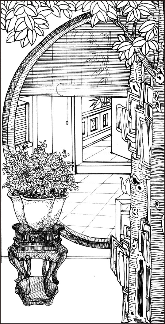 院落房宇并几案桌椅都有了,还远不能算完,《园冶》说得很明白,更费心血的是装修。它说的装修很宽泛,天花槅扇门窗彩绘都在里头,主要是些小木装修。小木装修是由帐幔装修发展而来的,帐幔因其卓越的装饰和优化空间的功能依然占尽风光。贾政一向不问家事,也知道帐幔帘子并陈设玩器古董,需要“一处一处合式配就”。帐幔帘子是柔软而妩媚的东西,以一种不动声色的机智,区隔开各种空间,保护空间内部的私密与界限;又能依据空间的个性变幻自己的色彩和模样,最能渲染空间的氛围,袅袅如风情万种的霞光云彩,一片一片地照亮细节,赋予空间很多种朦胧的精彩,使其既有条理和层次,又有过渡和变化,促成了不同小空间之间的渗透、流动和引申,空间呈现出活泼精致的动感和力度。