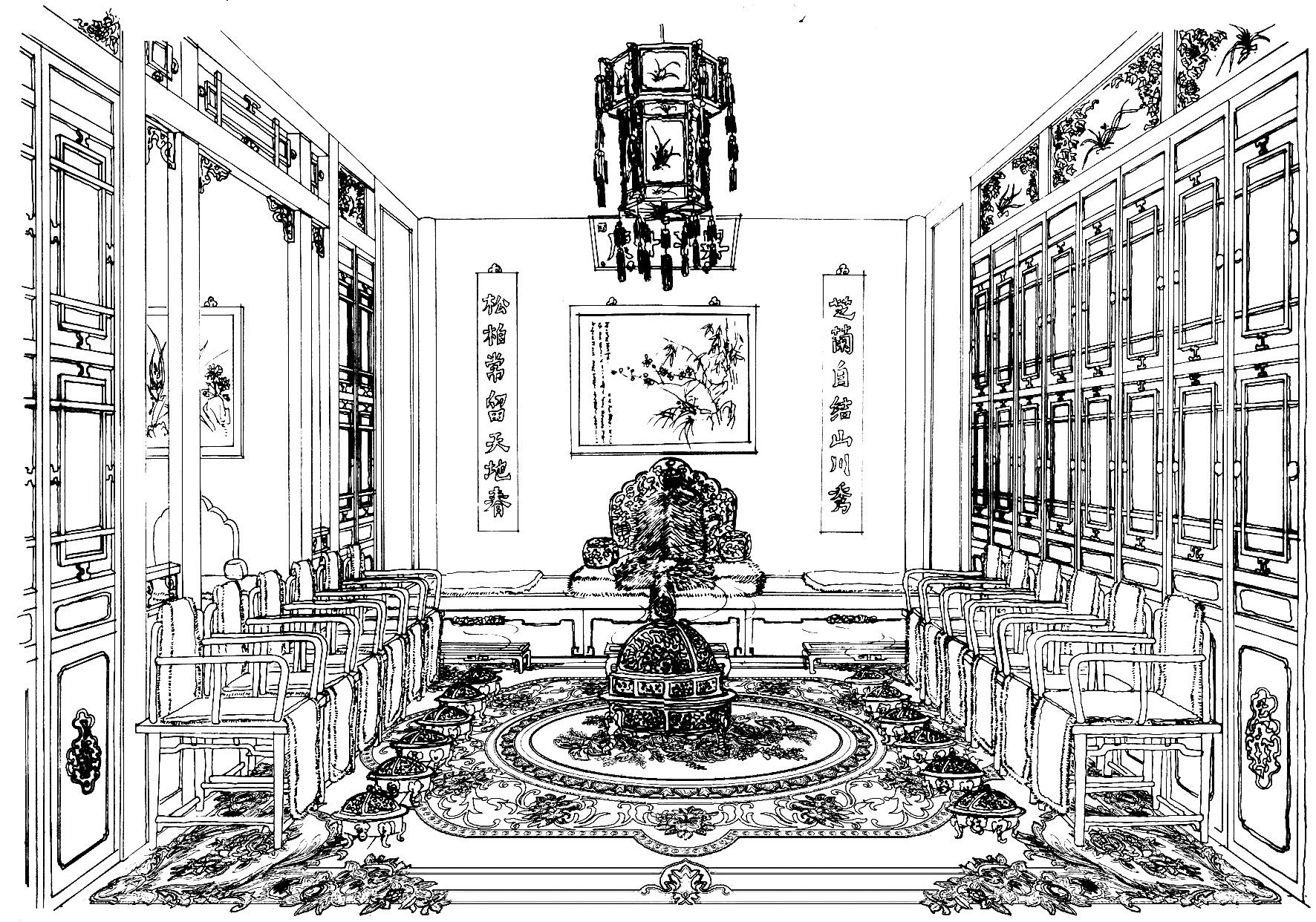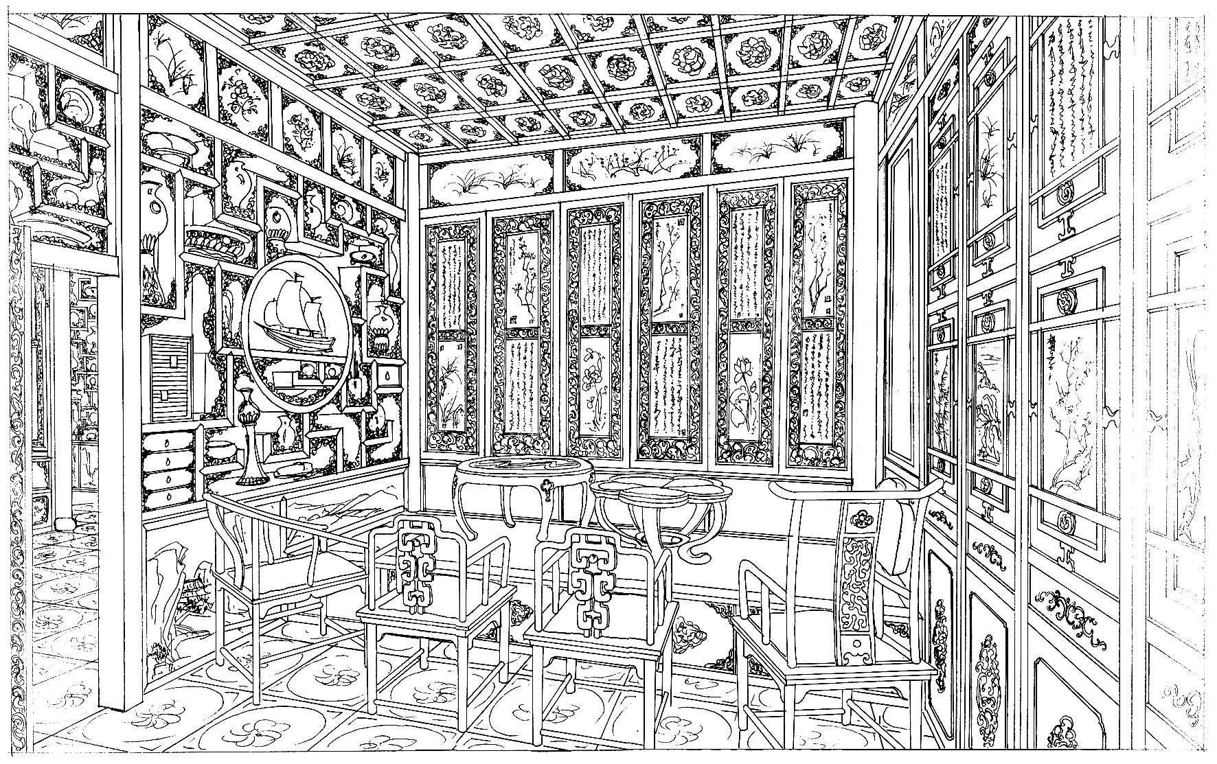书中第五十三回细描了一个类似的室内布局,是在宁国府除夕夜尤氏接待贾母的上房: