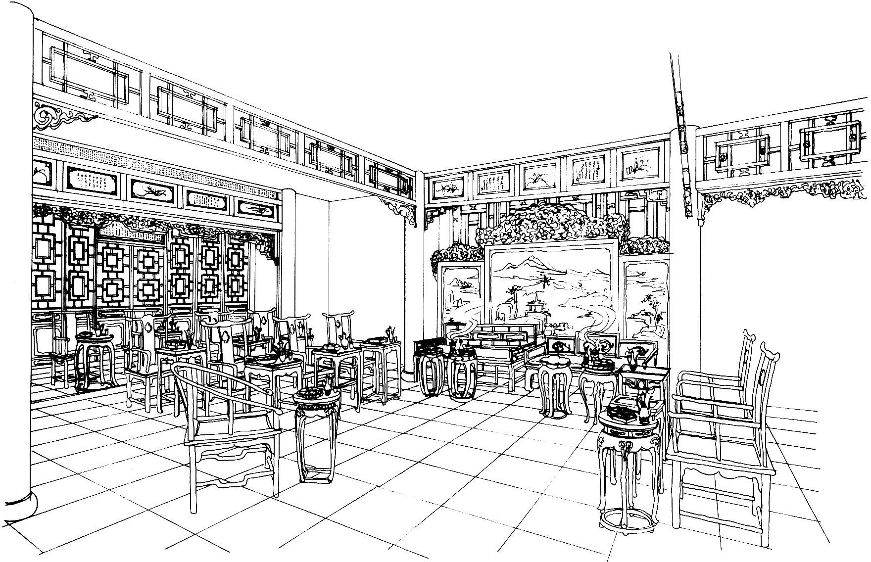 在中国古典建筑中,不论住宅的面积有多大,屋子数量有多少,从没有在建造时就设定饭厅位置的习惯,一般都是在所居院落的堂屋里开饭。但堂屋有其固定的陈设格局,故不能把餐桌椅固定地摆在堂屋当中,都是用餐时摆放,餐毕后撤去。