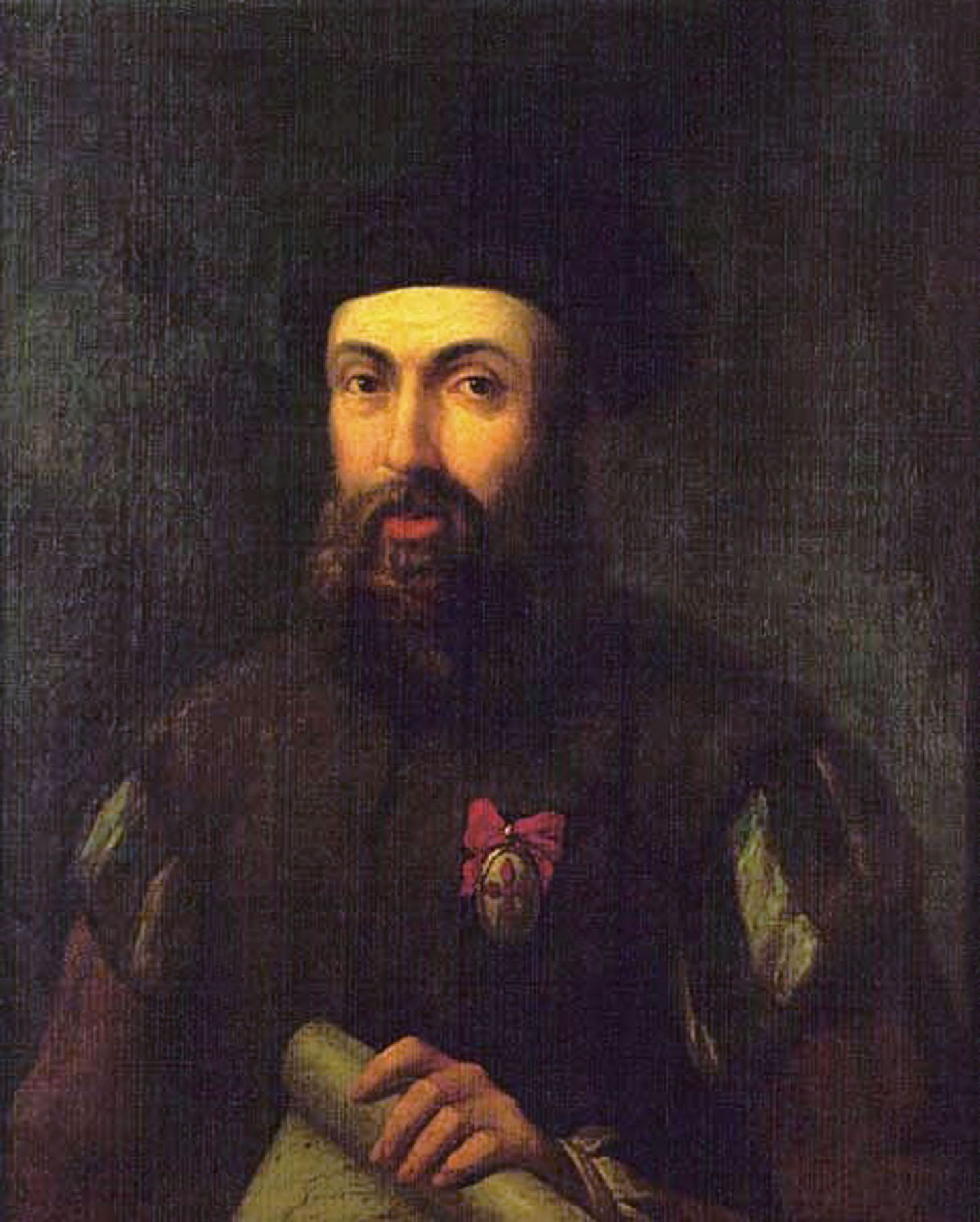 我估计,麦哲伦肖像画应该诞生于他死在菲律宾之后,当18名幸存的船员回到西班牙,船队环绕地球航行的消息轰动西方世界后,这才有人想描绘出发前还是个无名的葡萄牙海军退役军官的麦哲伦。这两幅画中的主人公应该是麦哲伦,似乎两幅画还有某种同源性,画面的色调基本一致,且麦哲伦都蓄着大胡子,戴着帽子,露出左耳。略有不同的是,其中一幅手拿地图,胸前有族徽。“见画如面”,我们权作这就是麦哲伦了。