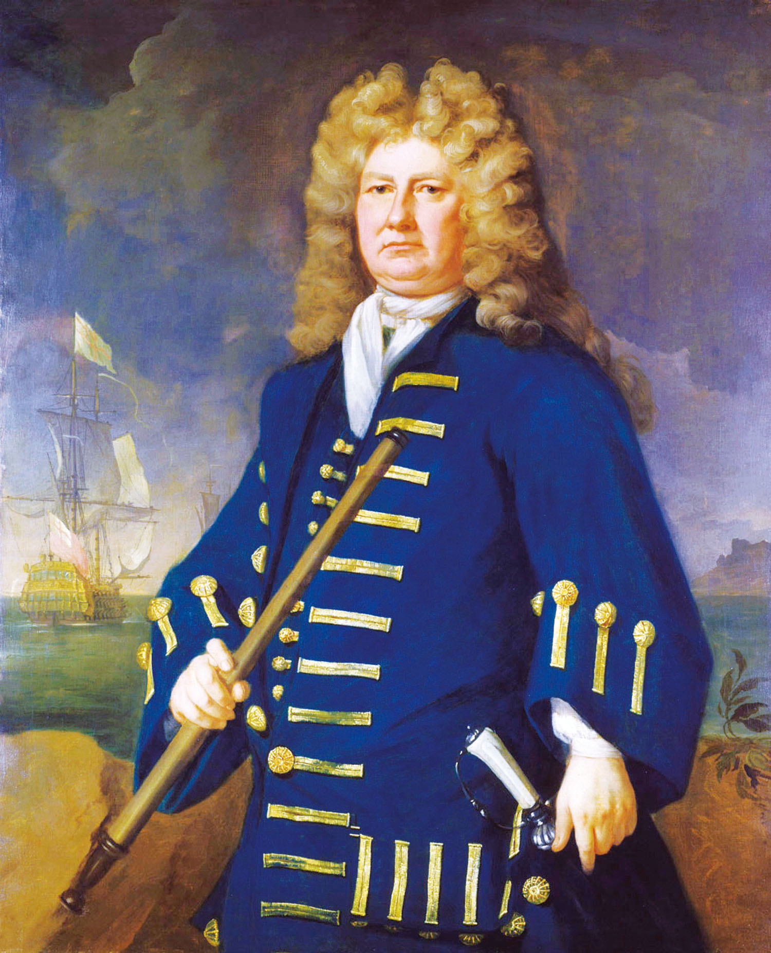 这幅画大约创作于1705年,作者是迈克尔·达尔,一位生于瑞典斯德哥尔摩,却一直在英格兰进行创作,并死在英格兰的肖像画家。达尔是瑞典画家中创作英格兰贵族肖像最多的一位,但那些肖像的主人公都没有肖维尔爵士那么传奇。肖维尔先后参加过英格兰对荷兰、对西班牙和对法国的海战,战功卓著,一路升到海军上将并获得爵士称号。画中的肖维尔在英格兰军舰背景前,手握元帅权杖。军中使用权杖源自古罗马,最初的权杖是根短粗的中空圆棒(也有的是羊皮筒),用作罗马将军们的传令节——将写好的命令放入筒中,封死后让传令兵递送。这一传统后来被英格兰海军继承,权杖成为海军最高统帅的象征。1705年1月13日,肖维尔被任命为英格兰海军最高统帅。此时的他志得意满,这种一帆风顺的成就感一直延续到他从地中海打败法国舰队得胜归来的1707年12月22日。