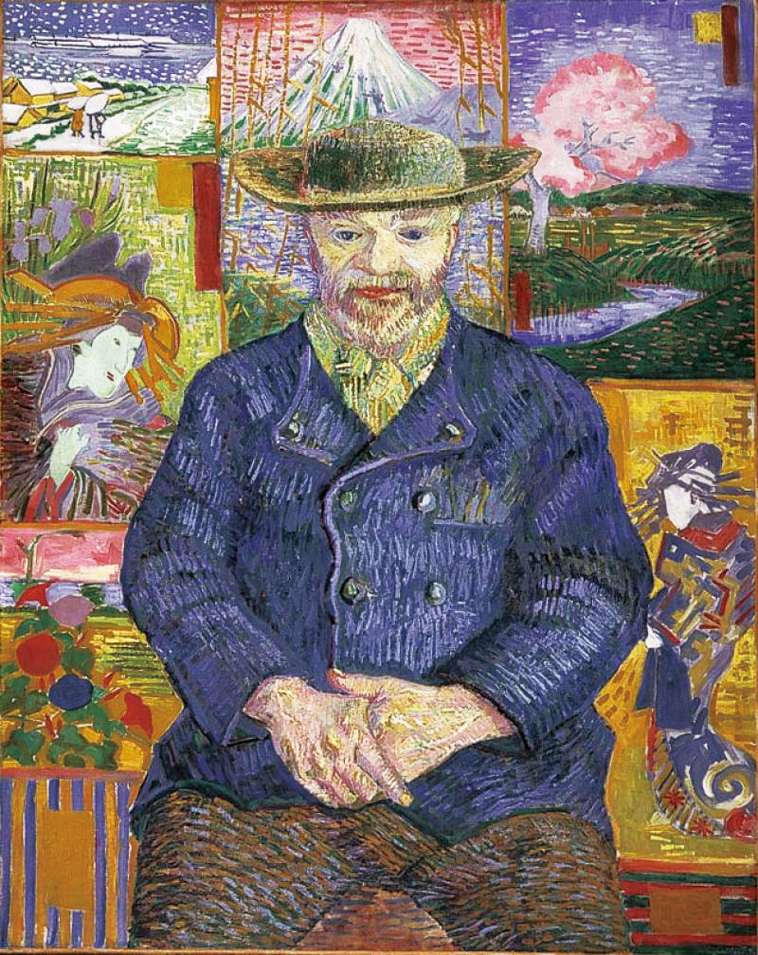 偏执的凡·高对于浮世绘的喜爱也是偏执的,先后临摹过不下30幅浮世绘作品。从他的代表作《唐吉老爹》的背景中即可看出,老唐吉背后的墙上挂了六幅浮世绘,填满了整个墙面。可以想象,当年苦苦探索新绘画技巧的现代派画家们,看到浮世绘时多么兴奋。那么,凡·高从浮世绘中看到了什么,或学到了什么呢?