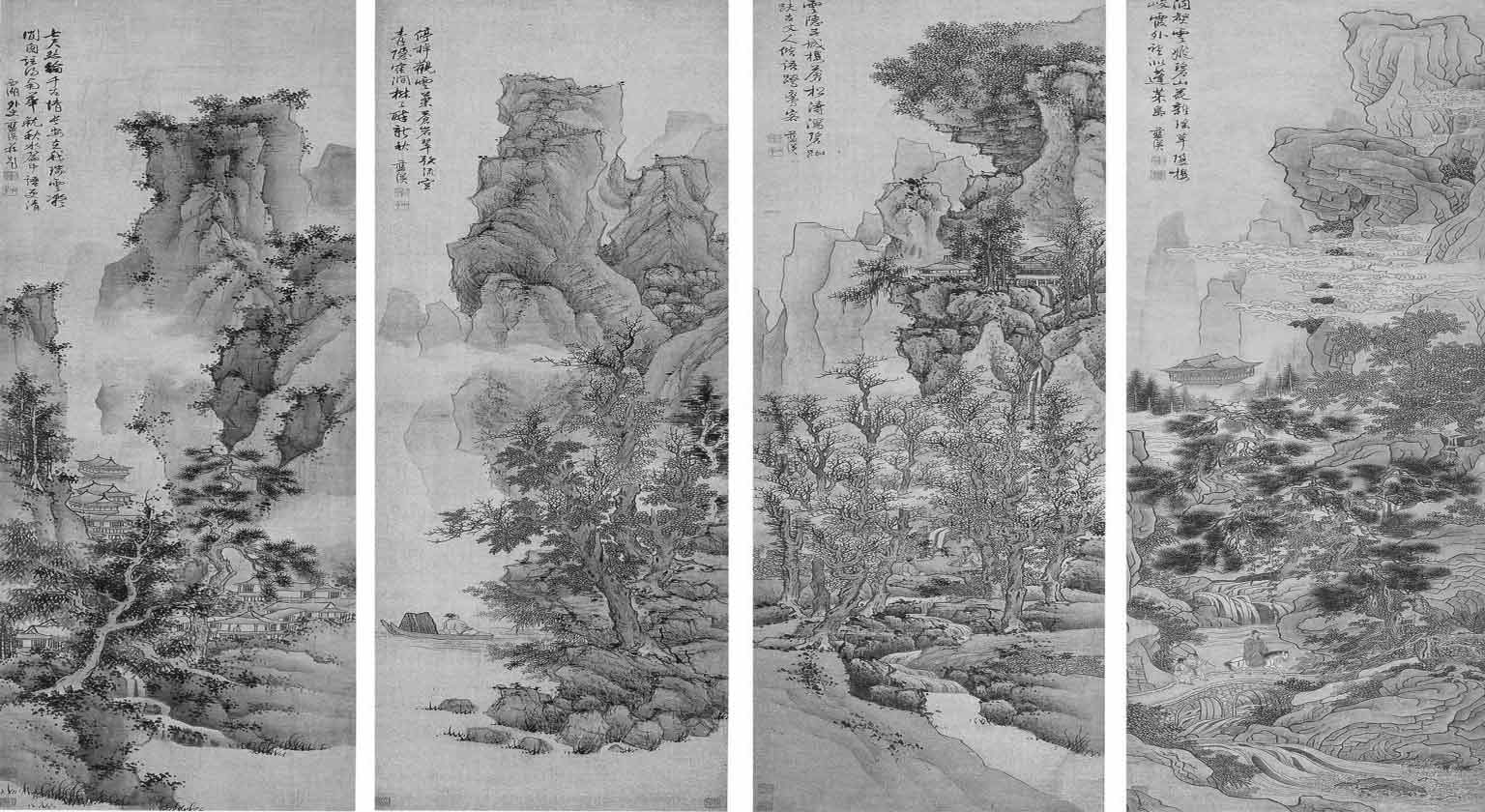 (明)蓝瑛《四季山水》四条屏