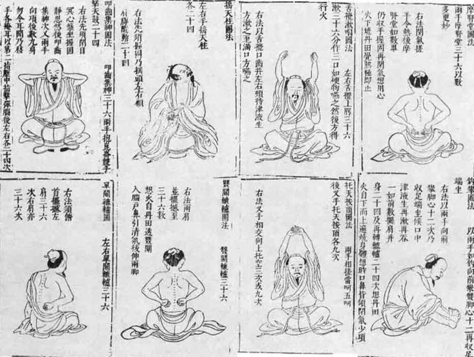 导引术历史悠久,据《庄子》记载,早在春秋战国时期,就已出现名为“熊经”“鸟申”的导引术,状如熊之攀枝、鸟之伸脚。