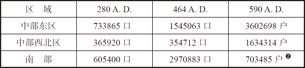 自280年至464年,中部西北区人口反见减少,而南部人口增加五倍,其消长之原因,李先生认为在于移民。人口数字之变迁或由于登记及调查之勤惰及严废,固不足即认为移民之证。唯西北华族人口因异族之侵入而内移,实为历史上尚可征信之事实。可引江统《徙戎论》(西历299年)文为例:(32)