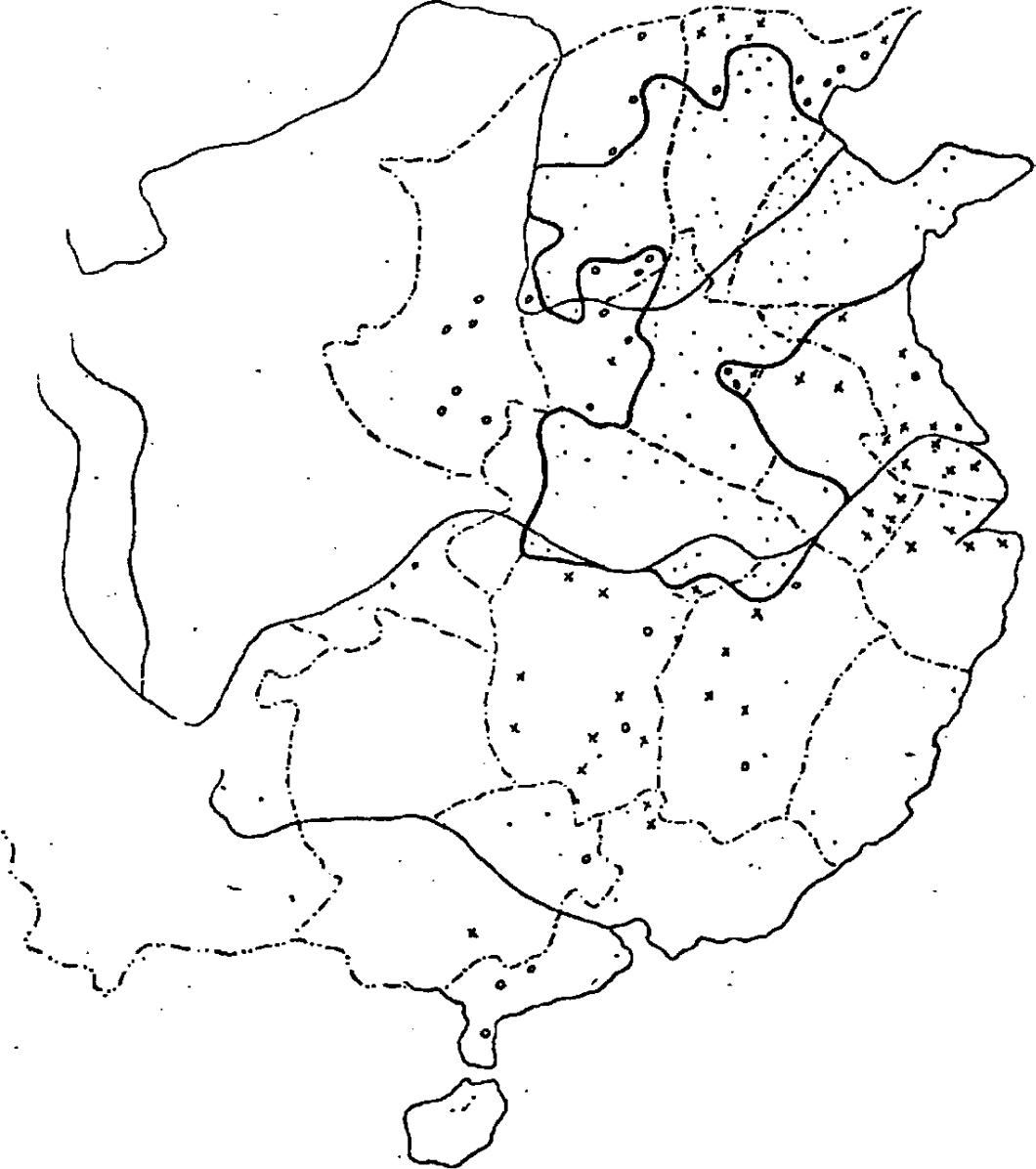 四、半亲迎区多麇集于中原亲迎区之西北及分散于长江以南。