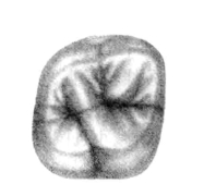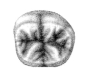 面表现为类似三个牙尖形状,近中颊尖、远中颊尖大小相等,近中舌尖特大或仅一个舌尖而圆突,牙尖偏近中。斜嵴不清楚或消失,中央窝、发育沟形态和分布不规则,副沟居多。