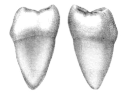 面有五个牙尖,类似下颌第一磨牙;有的牙冠较小,