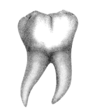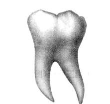 面溢出。同时沟、窝、点隙多发生龋病。⑦牙根根干粗,根分叉一般为两个或三个牙根。