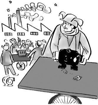 不一会儿李伯伯又摇摇晃晃走回来。他搬来了一个四条短腿的黑黑的铁家伙,放在平板车上。小布头赶紧打了个滚儿,才算没叫那个铁家伙给压在底下。可是这么一滚,他的漂亮的小外套却滚掉了,周围漆黑,他怎么摸也没摸着。