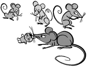 鼠老大很得意。他看见老三、老四在一旁发呆,就生起气来:“喳喳,你们怎么啦?都变成哑巴了吗?”