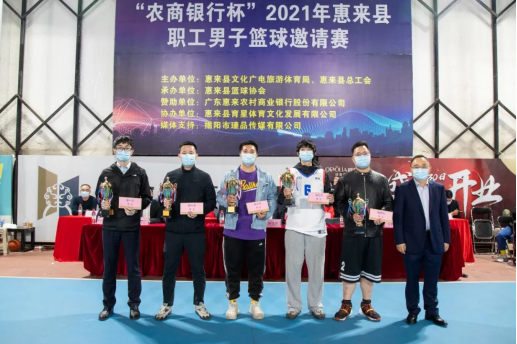 参加活动的领导嘉宾分别为获奖的球队和个人颁奖。至此,“农商银行杯”2021年惠来县职工男子篮球邀请赛圆满结束。