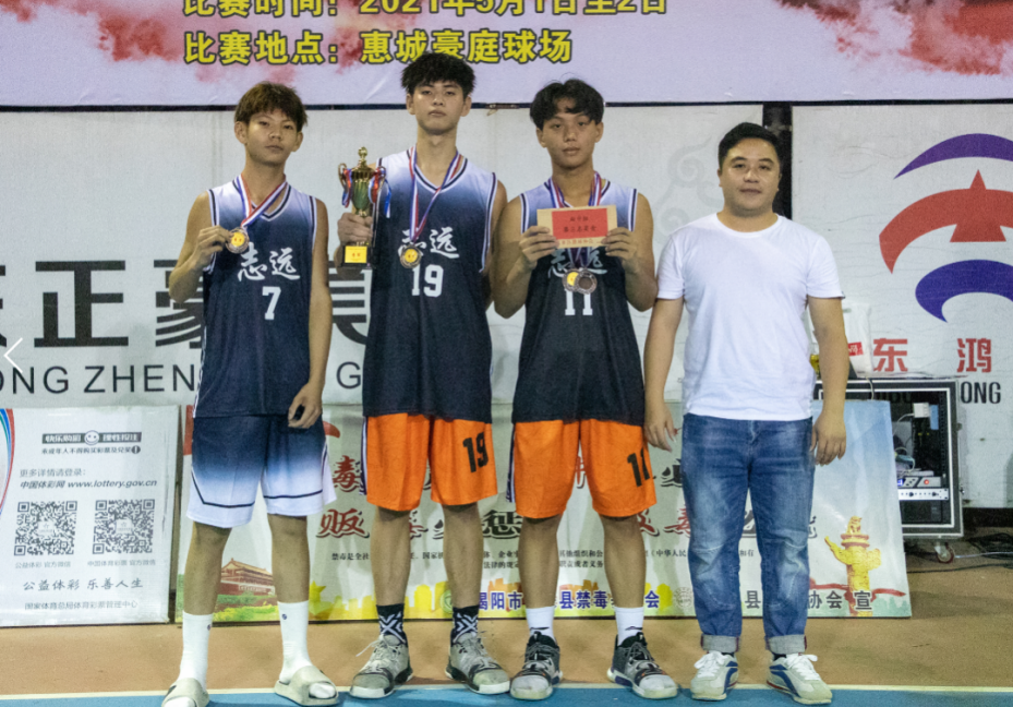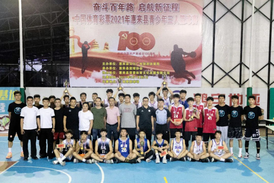 为庆祝中国共产党成立100周年,响应全民健身运动的号召,促进我县广大青少年篮球爱好者身心健康,由惠来县文化广电旅游体育局主办,惠来县篮球协会承办的中国体育彩票•2021年惠来县青少年三人篮球赛经过两天的比赛圆满的落幕。