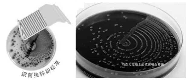 7)自动接种法 全自动接种仪采用环保设计,整个过程实现自动化操作。在电脑程序的控制下,根据不同标本自动选择相应的琼脂平板进行自动接种。与人工接种方法比较,操作过程更安全且标准化,适合大标本量的操作(见图1-12及文后彩图)。