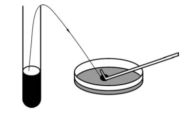 (2)L形玻璃棒:将直径为2~3 mm的玻璃棒一端弯成L形即成。L形玻璃棒在使用前必须灭菌,可用纸包扎高压蒸汽灭菌或临用前蘸取酒精在酒精灯外焰灼烧灭菌。L形玻璃棒主要用于涂布接种法。