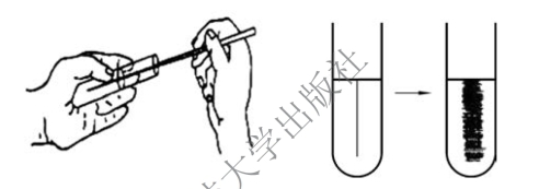 (2)从培养试管中取培养物或移种于另一培养管时,在拔出试管塞或合上试管塞前,均应将试管口塞交界处在酒精灯外焰上通过2~3次,以杀灭可能污染的或从空气中落入管口的污染菌。在开启试管塞时,应用无名指、小指和手掌夹住塞子,不得任意放置;操作时应保持试管口接近火焰;完毕后将试管口及塞子在酒精灯外焰上通过2~3次后,将塞子塞回试管口。