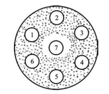 4.接种与培养 用无菌棉拭子蘸取菌液,在试管内壁将多余菌液旋转除去后,在M-H琼脂平板(测试链球菌时需应用加脱纤维血的M-H琼脂平板)表面均匀涂抹接种3次。每次旋转平板60°,最后沿平板内缘涂抹1周,确保涂布均匀。平板置室温下干燥3~5 min,参照CLSI标准选择已平衡至室温并在保质有效期内的药敏纸片,用无菌镊子将其紧贴于琼脂表面,镊尖轻压一下纸片,使其贴平。各纸片中心距离应大于24 mm,纸片的中心距平板内缘大于15 mm,直径90 mm的平板最多贴7张药敏纸片(见图3-1),纸片贴上后不可再移动,因为抗菌药物会自动扩散到培养基内。将贴好药敏纸片的平板倒置于35℃恒温培养箱18~24 h后阅读结果,对甲氧西林和万古霉素敏感实验应孵育24 h以上。