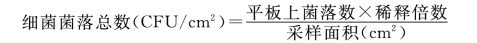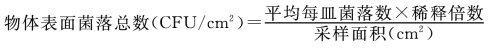 1)采样方法 用5 cm×5 cm的标准灭菌规格板,放在被检物体表面。用浸有无菌0.03%mol/L磷酸盐缓冲液(PBS)或生理盐水采样液的棉拭子1支,在规格板内横竖往返各涂抹5次,并随之转动棉拭子,连续采样4个规格板面积,被采表面<100 cm2,取全部表面;被采表面≥100 cm2,取100 cm2。剪去手接触部位后,将棉拭子放入10 mL无菌检验用洗脱液的试管中送检。门把手等小型物体则采用棉拭子直接涂抹物体表面采样。采样物体表面有消毒剂残留时,采样液应含相应中和剂。