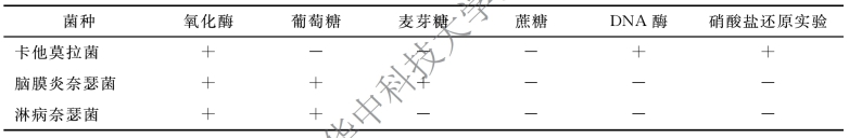 卡他莫拉菌和脑膜炎奈瑟菌、淋病奈瑟菌的主要生化反应鉴别要点见表5-7。
