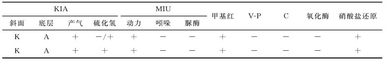 (2)培养基:克氏双糖铁(KIA)培养基、动力-吲哚-尿素(MIU)培养基、葡萄糖蛋白胨水、枸橼酸盐琼脂斜面、硝酸盐培养基、SS琼脂培养基、MAC琼脂培养基或SMAC琼脂培养基。