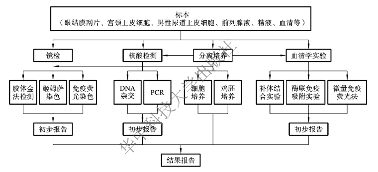 根据临床诊断需要,采集沙眼患者眼结膜刮片、宫颈上皮细胞标本或男性尿道上皮细胞、前列腺液、精液以及患者血清等标本。
