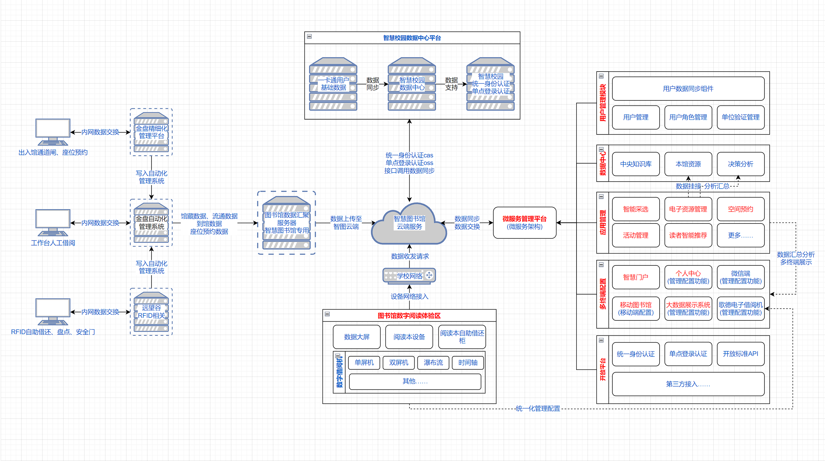 截至2022年3月,同2021年呈报方案一致的智慧图书馆整体架构: