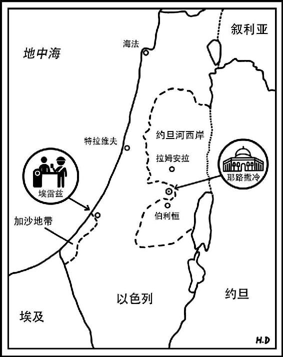 目前,巴勒斯坦人控制加沙地带和约旦河西岸多个城市,以色列领土夹在加沙与西岸之间,控制着宗教圣地耶路撒冷。加沙地带,是位于西奈半岛东北部地中海沿岸,占地365平方公里的一条狭长地带,也称“加沙走廊”。2015年统计人口220万,是全世界人口密度最高的地区之一,四面为以色列封锁。2007年哈马斯与巴勒斯坦民族权力机构火并,赢得加沙的完全控制权。